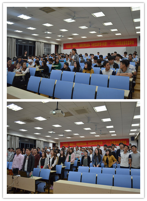 宣讲之前,主持人带领大家通过一段视频,带领同学们感受当下毕业生就业压力逐年递增的真实状况。