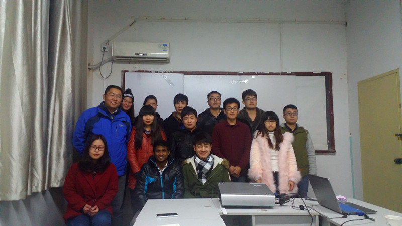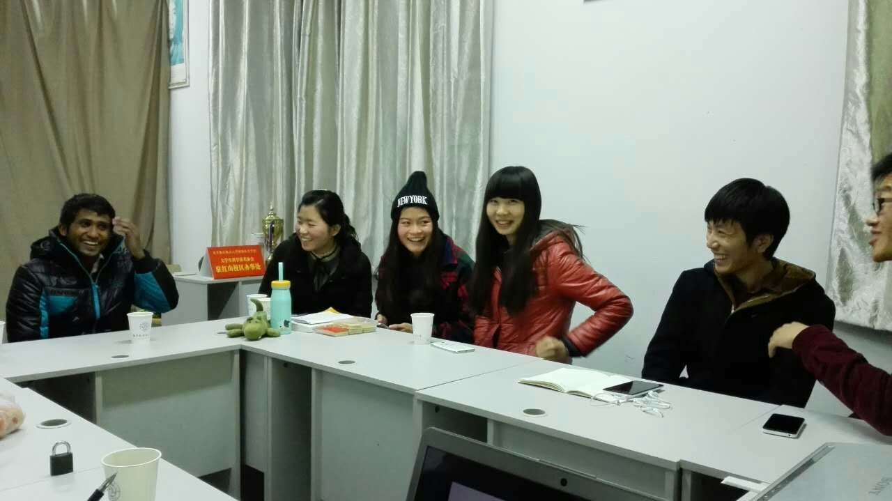 外语交流会于11月26日晚上在教学楼四楼活动室进行。国际教育学院的孟加拉国籍留学生沙木同学作为特邀嘉宾参加。尽管天气寒冷,沙木同学仍准时从江宁校区赶到,7点交流活动正式开始。沙木同学通过与每位同学交换位置、面对面交流、共同观看英语教学视频等形式来向大家说明学习口语最重要的就是“Face Youself”。永利官网大三的张茂根同学也分享了他自己学习英语的经历,并以流利的口语带动大家敢于开口说英语。