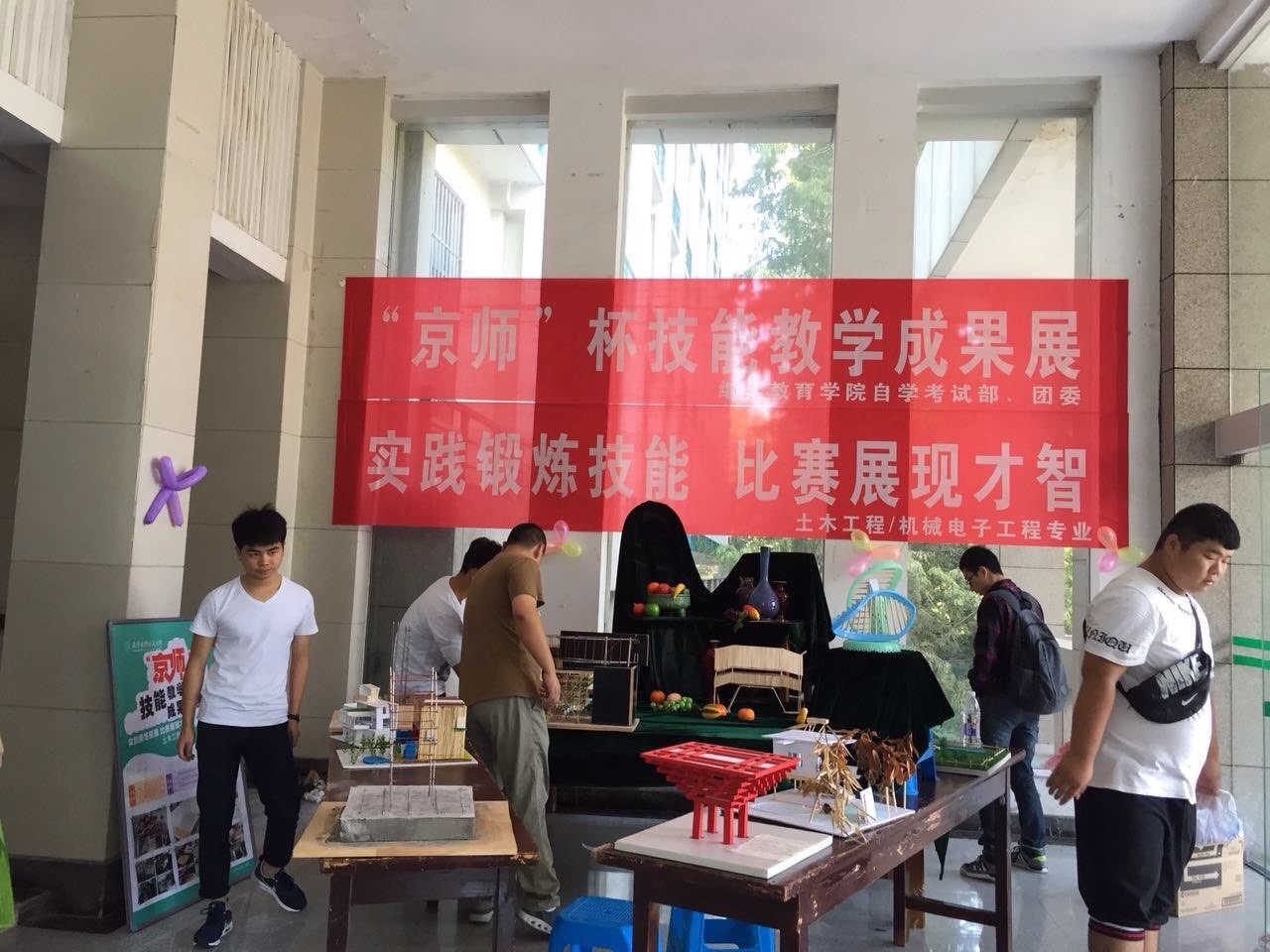 为了丰富校园文化生活,培养学生实践创新能力,促进学历加技能双模式培养人才的发展,在上学期末,学院与南京京师继续教育培训中心联合举办了“京师”杯技能教学成果比赛,永利官网土木工程专业、机械电子工程专业的200多位同学参加了比赛。在任课老师的指导下,同学们以小组合作的模式完成了相应的作品。