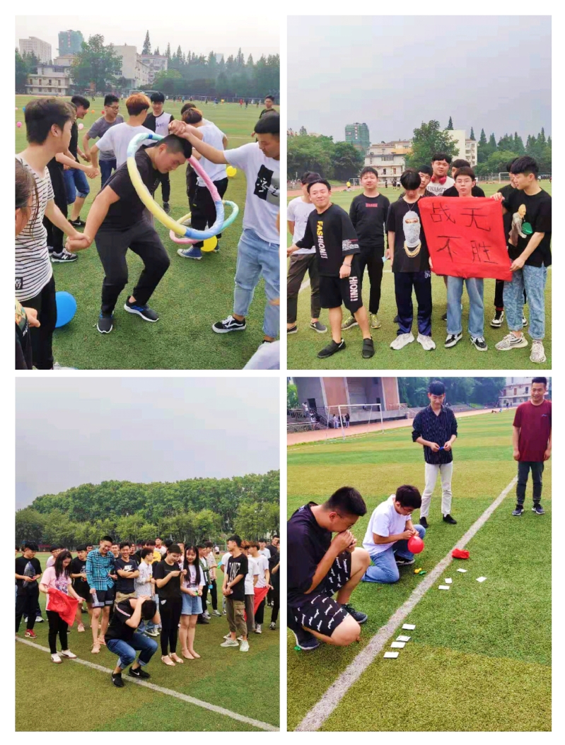 开场的“悦跑越快乐—迷你马拉松”速度与耐力大比拼活动迅速激发了队员们的斗志,各队纷纷摩拳擦掌跃跃欲试。接着是无限欢乐的“你OUT了—疯狂躲避球”项目,各队想方设法将“迷你排球”投向、砸向对方“受保护人员”,各式闪躲动作搞怪、生趣,引发现场气氛一片欢腾。在接下来的进行的“跨越新征程——趣味障碍跑”比赛环节中,为了让呼啦圈快速而顺利穿过身旁自己和队友,同学们各显神通,集思广益献计献策,在比赛过程中低头抬脚,抬臂送圈,不断蜷缩身体让自己过圈的同时护着身旁队友不受伤害,在啧啧赞叹默契配合过程中,也因有不协调的“默契”而引发的开怀欢笑。最后的游戏项目是“团结力量大—拔河比赛”,同学们使出浑身解数、面红耳赤,但丝毫没有放松,加油声、呐喊声此起彼伏,比赛精彩纷呈,使得整个场面激烈又友爱。