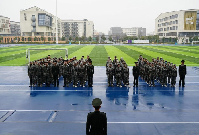 12日下午四点,队列会操在校区西操场进行,学院驻天目湖校区办公室主任刘岚、驻区辅导员到场观摩。驻区办副主任陈圆平在结训讲话中代表驻区学生工作人员和全体参训学生向教官的训练指挥表示了感谢,同时希望同学们将军训期间所学的规矩意识、军人作风带到以后的学习生活中,刻苦学习、规范言行,不断提升自己,努力为文明校园建设添砖加瓦。