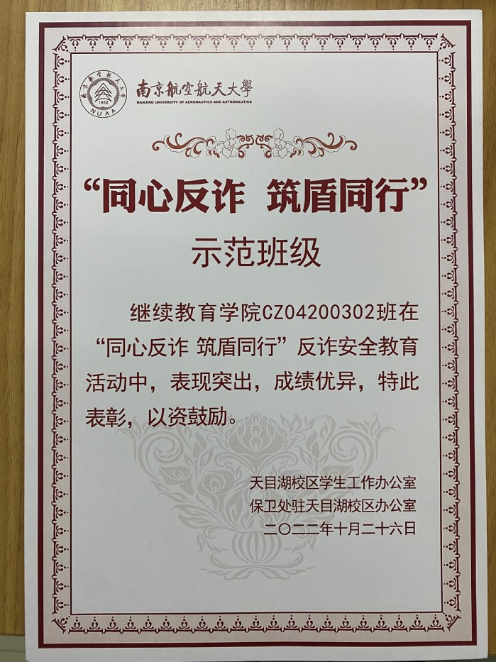 近年来,防范网络诈骗一直是高校学生安全工作的重要内容。学院在学生日常教育管理工作中,通过召开主题宣讲班会、通报警示案例、设置班级安全员等多种途径保护学生财产安全不受侵害,取得了一定成效。学院将一如既往高度重视防范网络诈骗的宣传教育,将学生防诈工作做细做实。