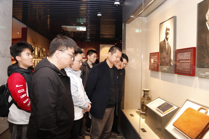 接着,大家瞻仰了当年参加第二次国共和谈的场景环境,整个画面呈现S型,代表着革命先烈当年所走过的曲折漫长的道路。大家边走边看,来到中共代表团办事处旧址、周恩来图书馆等展区,在一幅幅泛黄的照片、一件件简朴的实物、一段段珍贵的影像资料前驻足凝视,切身感受到先辈们坚守初心的爱国情操、无私奉献的工作精神,敬重之情深藏心底,自豪感油然而生,使命担当深感沉重。