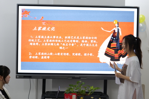 随后,由土家族、回族、彝族、壮族等7名少数民族学生代表依次介绍了自己的基本情况,向大家介绍了自己民族的地理分布、生活习俗、风土人情、文化特色,让在场的所有人领略了我们国家不同民族的特点,品尝了不同民族的特色美食,进一步提高了同学们心中的民族共同体意识。活动中,同学代表还就在校学习、生活情况和老师们进行了交流,分享了自己对未来的打算和展望,表示在丰富多彩的校园学习生活中要把专业学好、综合素质培养好、职业技能练就好,争做社会有用之才。