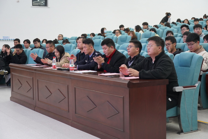 潘宇鑫警官以“建平安校园,促全面成才”为题,围绕人身风险、财产风险、法律风险三个方面详细介绍了关于校园安全、法律常识等内容,为永利官网师生在校园生活中的安全问题敲响了警钟;同时,潘警官结合电信网络诈骗问题,对于如何防范的核心关键点做出六点专门提醒,以诙谐幽默、喜闻乐见的方式,揭露了经常发生在学生身边的电信诈骗形式和案例,生动告诫同学们要时刻防范,掌握必要的防诈技能,切实筑牢防范电信诈骗的防护墙。