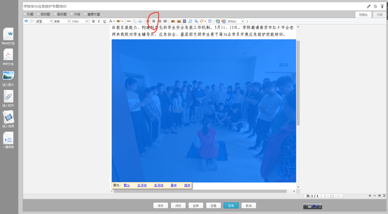 12.点击图片,此时图片显示被蓝色覆盖,选择“居中”标志。