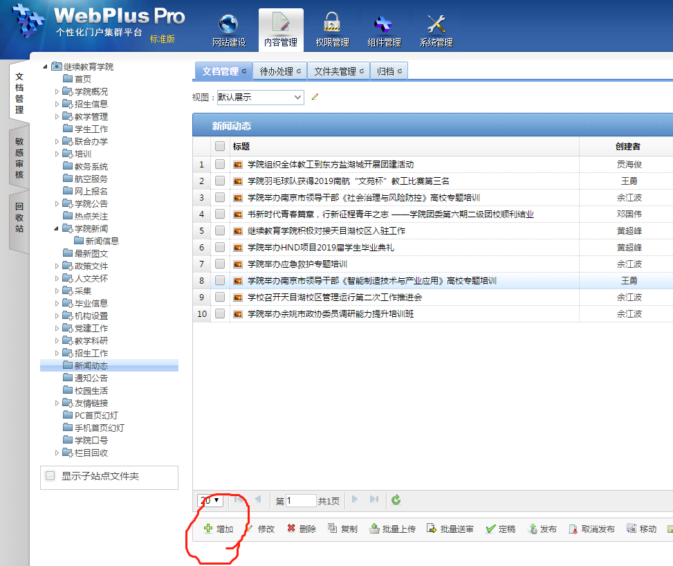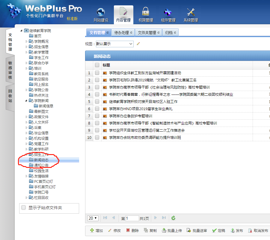 如果发布的是“新闻动态”的稿件,点击“新闻动态”