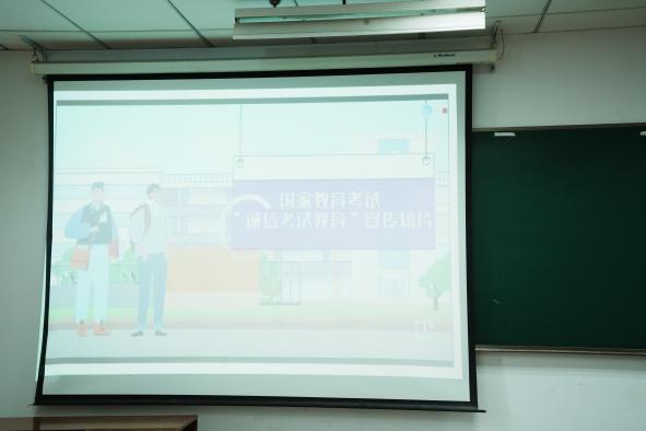 接着,与会人员观看了公益短片“诚信考试 答好青春卷”主题趣味视频。学生联合会执行副主席张知柠同学作为考生代表发言并领誓,她号召全体同学要做诚实守信的大学生,坚决杜绝各种考试作弊行为,杜绝不良考风,做好复习规划,用真实的成绩证明自己。