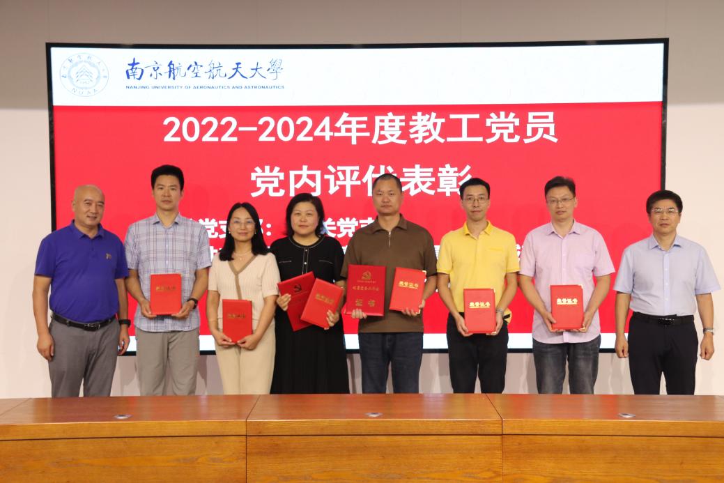 会议首先进行了2022-2024年度教工党员党内评优表彰。刘建成宣读了《中共南航继续教育(高等职业技术)学院委员会关于表彰2022-2024年度优秀共产党员、优秀党务工作者和先进党支部的决定》,党委书记刘建成、院长王伟为获得2022-2024年度校级及学院党内表彰的优秀共产党员、优秀党务工作者、先进基层党支部依次颁奖。