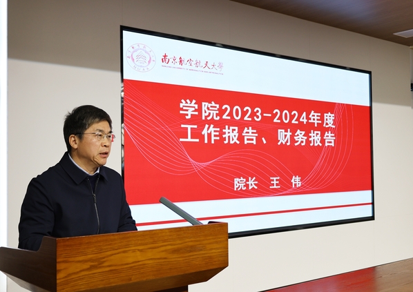 院长王伟同志作了学院2023-2024年度工作报告及财务报告。报告以《携手推进终身教育新进程,稳健引领继续教育新航向》为主题,详细总结了学院在过去两年中各方面取得的丰硕成果。他强调,要落实学校第十七次党代会精神的“八大行动”,锚定推进“九大改革任务”,高质量完成“十四五”规划目标任务,为学校加快建设航空航天民航特色鲜明的世界一流大学贡献继续教育力量。