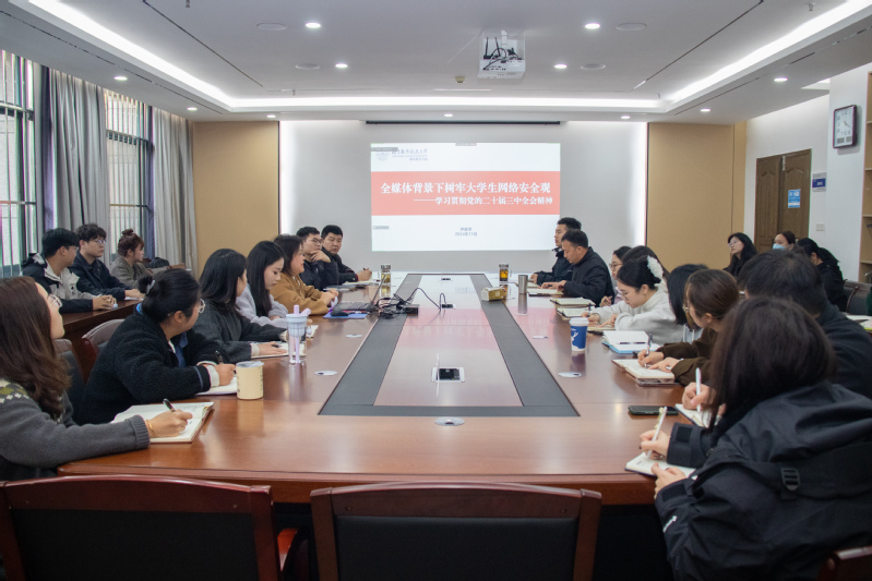 学院党委副书记尹春苹以“全媒体背景下树牢大学生网络安全观”为题,从“媒体融合背景下高校网络安全观面临的风险、高校网络安全舆情案例梳理分析与处置、高校网络安全风险的防范与化解”三个方面,详细阐述了做好网络安全工作的现实紧迫性,她梳理分析了高校大学生在网络安全领域常见多发的现象与案例,明确了近期学院学生面临网络安全和意识形态工作的主要任务。她强调,大家要认真学习、全面落实上级党组织关于网络安全工作的部署要求,坚决把牢政治方向,强化责任落实,要加强工作统筹,健全体制机制,加强网络思政教育,筑牢学院安全稳定防线。