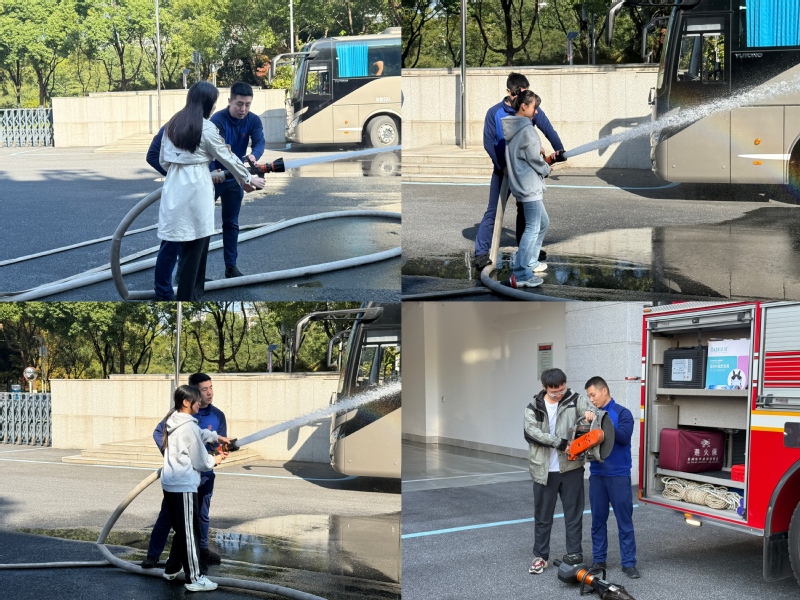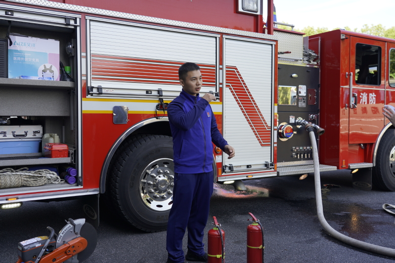 随后,同学们来到了消防器材展示区,消防员详细介绍了各种消防器材的用途和操作方法。从干粉灭火器到消防水枪,到救援器材,每一种设备都承载着消防员们保护人民生命财产安全的神圣使命。消防员们还现场演示了灭火器的使用方法,并邀请同学们亲自操作,通过实操演练,同学们掌握了灭火器的正确操作步骤和注意事项。