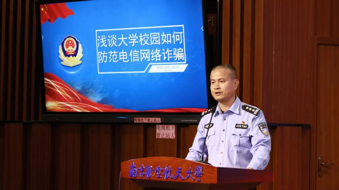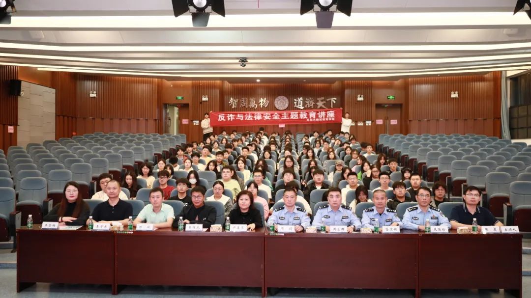为深入学习贯彻党的二十届三中全会精神和学校安全工作会议精神,进一步增强师生防范电信网络诈骗的法律意识,提升校园安全防范水平。10月17日,77779193永利官网在天目湖校区巡天楼一楼报告厅进行了“天目护航”反诈与法律安全教育讲座。溧阳市公安局治安警察大队副大队长周剑、古县派出所副所长周立群、治安警察大队管卫彬、史筱瑜;77779193永利官网天目湖校区党工委副书记、学生处副处长贡海俊、77779193永利官网党委副书记尹春苹和全体2024级新生参加了讲座。