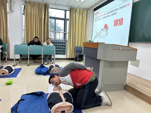培训中,秦淮区红十字会的专业讲师们系统的讲解了应急救护的基础知识、心肺复苏术、AED的使用方法、海姆立克急救法等多方面内容。着重强调的急救原则和流程,为应急处置提供科学规范的指引。尤其是心肺复苏术理论讲解,从心脏骤停原理到胸外按压与人工呼吸细节,都让老师们深刻领会到每一个操作环节都至关重要。